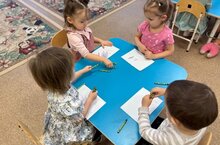 В 1 группе дети под руководством воспитателя Эллины Олеговны рисовали восковыми мелками на тему "Моя Любимая игрушка". -
