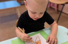 В 1 группе дети с воспитателем Эллиной Олеговной рисовали на тему "Морковка для зайчика". -
