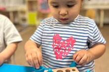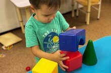 В 1 группе дети играли с сортером. В ходе игры с воспитателем Эллиной Олеговной дети учились различать размер и высоту предметов, изучали цвета и учились считать, тренировали мелкую моторику рук. -