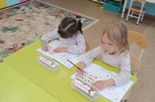 На очередном занятии ФЭМП дети 9 группы работали в тетрадях, изучая цифру 3 с педагогом Зайнап Динаесовной. -