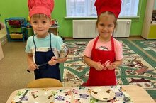 Дежурные 10 группы - Никита и Сюмбель - с удовольствием помогают с накрытием стола. -