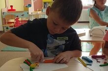 Работа с пластилином развивает мелкую моторику, вырабатывает усидчивость, интерес и внимательность. Создание сказочных образов своими руками запоминается в сознании детей надолго. Мир сказок погружает детей в творчество, а создание героев дарит им радость и хорошее настроение. У ребят 8 группы прошло занятие лепки с воспитателем Натальей Юрьевной на тему "Петушок с семьей" по мотивам произведения К.Ушинского.