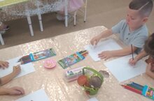 Дети 2 и 4 групп на очередном занятии занимались раскрашиванием ёжика под руководством воспитателя Лиры Зуфаровны. -