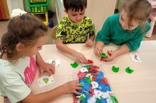 Игры с прищепками – это прекрасный тренажер для пальчиков. Ребенку нужно приложить немало усилий, чтобы прикрепить прищепку к картинке. Развивается координация движений пальцев рук, укрепляется и развивается кисть. Такие игры направлены на развитие мелкой моторики, воображения, логического мышления, творческих способностей, а также решают задачи сенсорного развития: освоение и закрепление цветов, пространственных отношений, геометрических форм. В игре с прищепками задействованы пальчики. А правильные и уверенные движения пальчиков — залог своевременного развития речевой функции ребенка. Для детей это веселое и интересное занятие, а также очень полезное. Ведь тренировка пальцев и выполнение ребенком точных движений руками обеспечивают полноценное развитие головного мозга малыша. Детям 3 группы очень нравится заниматься в кружке по сенсорике с воспитателем Ильмирой Радульевной.