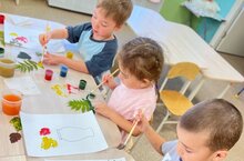Очередное занятие кружка нетрадиционного рисования в 10 группе было посвящено технике «оттиск листьями». Ребята рисовали с воспитателем Динарой Дикатовной на тему «Осенний букет». Цель: ознакомление детей с новым видом изобразительной техники - «печать листьями». -