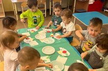 Аппликация – вид творческой деятельности, которым ребенок может заниматься с самого раннего возраста, когда он научится держать в ручках листочки разноцветной бумаги и с помощью взрослых под одобрительные комментарии накладывать их ладошкой на подготовленную основу. С помощью аппликации можно рассказать детям целую сказку, в которой герои появляются в виде вырезанных фигурок и остаются на бумаге, благодаря приложенным стараниям малышей. Участие в "создании" сказки является своеобразным стимулом для продолжения занятий аппликацией, побуждает маленького человечка к дальнейшему творчеству в этом направлении. На очередном занятии с воспитателем Эллиной Олеговной ребята 1 группы создавали аппликацию "Ежик в гостях у малышей".