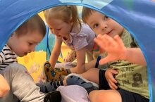 Дети 1 группы с удовольствием расслабляются в уголке уединения с воспитателем Эллиной Олеговной. -