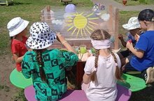 Во время рисования у детей хорошо развивается чувство цвета, ритма, формы, а также развивается мышление, воображение, память, мелкая моторика. А нетрадиционные техники рисования формируют положительное отношение к рисованию. Именно нетрадиционные техники рисования создают атмосферу непринуждённости и способствуют развитию инициативы. Нетрадиионная техника рисования на пленке вызывает много позитивных эмоций. Она очень нравится детям. На пищевой плёнке можно рисовать и на улице, и в помещении. Нужно просто натянуть пищевую пленку, взять гуашь и волшебство начинается! Ребята 3 группы попробовали данную технику рисования, собравшись дружно на участке сада, обговорили с воспитателем Лирой Зуфаровной как правильно наносить краску на кисточку, чтобы краска не стекала по пленке, натянули пленку и приступили к работе. Было очень весело и увлекательно. Дети рисовали по собственному замыслу: цветы, небо, солнце, море, облака, себя, своих друзей.