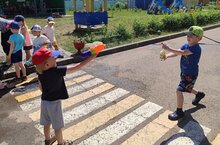 В летнюю жару спасаться от зноя лучше всего на берегу речки или в бассейне. А можно устроить совместные водные водные развлечения. Особенный восторг вызывает у детей игра - развлечение с водяными пистолетами. Игра с водяными пистолетами развивает у детей ловкость, меткость, координацию движений, нестандартное мышление, а также побуждает к активным действиям и закаливает детский организм. Несомненным плюсом водяных пистолетов является почти полная безопасность. После выстрела не нужно бегать по территории в поисках боеприпасов, достаточно заново наполнить резервуар внутри игрушки и вперёд - за позитивом и отличным настроением! Визги, радость, веселье и приятная прохлада обеспечены! Для тех, кто не особо рвется в бой с водяными пистолетами, существуют творческие игры из брызгалок с водой и трафаретов, используя которые можно создать на асфальте оригинальные забавные рисунки. Вот такими водными развлечениями занялись ребята 11 группы с воспитателем Светланой Камилевной на очередной прогулке.
