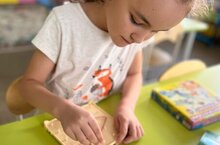 В 10 группе прошло занятие по лепке на тему «Утенок». Цель занятия: учить детей лепить предмет, состоящий из нескольких частей, придавая некоторые характерные особенности (вытянутый клюв, хвостик). Задачи: закреплять приемы лепки, упражняя в использовании приема прищипывания, оттягивания; развивать умение в сглаживании швов между деталями.