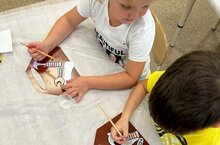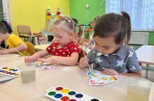 История дымковского промысла насчитывает около 400 лет. Глиняная игрушка, выполненная методом ручной лепки, прошедшая обжиг при температуре 850 градусов, побеленная и расписанная яркими темперными красками традиционными орнаментами, характерными только для этого промысла, украшается ромбами из золотой потали или сусального золота. Для дымковских игрушек характерно большое разнообразие форм – это фигурки и свистульки в виде животных и птиц, коней, всадников, нарядных барынь и деревенских крестьянок. Сегодня мастерство, как и прежде, бережно передаётся от опытных мастеров молодым, тем самым сохраняется преемственность поколений в народном художественном промысле. Ознакомившись с темой дымковских игрушек, дети 10 группы приступили к рисованию дымковских птичек.