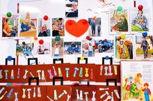 - учить приёмам наклеивания: намазывать клеем обратную сторону детали, брать на кисть немного клея, работать на клеенке, прижимать изображение к бумаге салфеткой и всей ладонью.