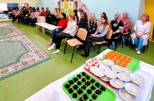 Вопрос питания - один из самых волнующих вопросов для родителей, и это вполне закономерно, так как сбалансированное правильное питание для растущего организма - это залог крепкого здоровья. Чаще всего родители, забирая ребёнка из детского сада, переживают, всё ли съел ребенок, полезными и вкусными ли были блюда. Одно из важных мероприятий, направленных на вовлечение родителей к вопросам сбалансированного и полноценного питания детей - это дегустация блюд. В нашем саду уже стало доброй традицией проводить дни открытых дверей с дегустацией блюд детского питания. Очередное мероприятие состоялось вчера, 10 октября. Заведующий Ландыш Ришатовна выступила перед приглашёнными родителями, подробно рассказав о кадровом составе пищеблока сада, о правилах и содержании меню, о недавней экскурсии руководителей детских садов города на комбинат ООО "Школьное питание", являющийся поставщиком продуктов питания в детские сады и школы нашего города. Ландыш Ришатовна подчеркнула, что один из главных принципов в вопросе питания - это доступность, наглядность и открытость перед родителями нашего детского сада. Также Ландыш Ришатовна отметила насколько важно создать правильный психологический климат, который не только улучшит пребывание детей в детском саду, но и позволит им приобретать должные навыки комфортным образом. Так, красивая сервировка стола помогает детям узнать основы правил этикета и познакомиться с хорошими манерами, а грамотная сервировка стола оказывает прямое влияние на пребывание детей в детском саду и создаёт комфортную психологическую атмосферу у малышей. Шеф-повар Венера Наилевна ответила на интересующие родителей вопросы. В завершение встречи родителям представилась прекрасная возможность вспомнить вкус детства и отведать представленные на дегустации блюда, с любовью приготовленные нашими поварами. Главной задачей подобных мероприятий является расширение представления родителей об организации питания в детском саду, о разнообразии блюд, а также наглядная демонстрация их необыкновенного вкуса и эстетичности оформления. Дегустация прошла с пользой, положительными отзывами и впечатлениями для всех участников мероприятия. Такие встречи помогают родителям лучше узнать о системе питания детей в детском саду, обогащают их представления по данному вопросу, сближают и укрепляют взаимосвязь между родителями и детским садом.