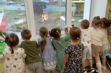 В дождливую погоду дети 9 группы любят наблюдать как капли дождя падают на землю. При этом ребята учатся самостоятельно определять погоду, отмечая вместе с воспитателем, что в середине осени часто идёт холодный дождь, небо заволакивают серые, тяжёлые облака, трава от влаги становится бурой, с деревьев опадают листья.