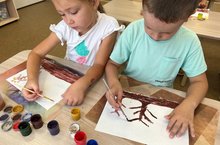 В 10 группе прошло увлекательное занятие - рассматривание сюжетных картин про осень и рисование пальчиками «Осеннее дерево». Цель: продолжить знакомить детей с нетрадиционными техниками рисования; закреплять знания о частях дерева: ствол, ветви, листва; развивать мелкую моторику пальцев рук; учить детей делать свою работу аккуратно, без посторонних мазков.