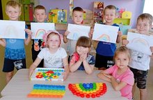 В тематический день, посвящённый радуге, ребята узнали много интересного из познавательных бесед, повторили и закрепили основные цвета и оттенки, научились смешивать краски, чтобы получить оранжевый, голубой и фиолетовый цвета, поиграли в подвижные и дидактические игры, отгадывали загадки. А свои наблюдения, выводы и впечатления о проведённом событии ребята выразили в творческих рисунках и аппликациях.