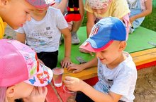 Яркие цветущие лужайки детского сада привлекают своей красотой "танцующих" бабочек и жужжащих пчёл в поиске ароматных цветов. Дети – юные исследователи - с интересом наблюдают за жизнью вокруг себя. Наши ребята на прогулках знакомятся с удивительным и прекрасным миром насекомых, учатся наблюдать и изучать их жизнь и особенности поведения в природе, отличать их друг от друга и давать правильные названия. В ходе этих познавательных занятий дошколята получают возможность дополнить и систематизировать свои представления о многообразии насекомых, их строении, образе жизни, а также закрепить полученные знания в художественном творчестве. Наши малыши понимают, что в природе прекрасно всё, и насекомые, как и все живые существа достойны уважения, любви и заботы.