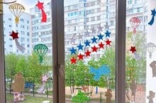 Традиционно в преддверии праздника Дня Победы жители нашей страны повсеместно принимают участие в патриотической акции «Окна Победы», украшая окна своих квартир и домов символами Великой Победы: георгиевскими лентами, красными звёздами, словами благодарности в адрес ветеранов, их портретами. Идея проведения этой акции возникла 3 года назад, когда в стране были введены ограничения в связи с пандемией. Собраться большими группами на тот период не получалось, но жителей страны не покидало желание проникнуться и поделиться радостью от празднования великого Дня победы. Так пришла идея украшать окна своих квартир портретами воевавших на фронте родных и близких, рисунками, государственным флагом, звёздами. Главные цели акции: создать атмосферу значимости этого важного праздника в нашей стране, передать молодому поколению его традиции, выразить свою благодарность героям Великой Отечественной войны и почтить память об ушедших ветеранах. Наш детский сад чтит и активно поддерживает традиции в честь Дня Победы.