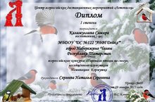 Центр всероссийских дистанционных мероприятий «Летописец» объявил о старте всероссийского конкурса «Пировали птицы на снегу», посвящённого кормушкам. Цели и задачи Конкурса: развитие творческих способностей у детей. Такие конкурсы предоставляют педагогам возможность выявлять и развивать способности своих воспитанников к интеллектуальной и творческой деятельности посредством их участия в творческих конкурсах различной направленности. Ребята 10 группы с воспитателем Натальей Сергеевной приняли участие в даннном конкурсе и уже стали обладателями красочных дипломов и свидетельств. Поздравляем наших малышей и желаем и в дальнейшем принимать участие в подобных мероприятиях, с каждым разом удивляя и восхищая справедливое жюри своими чудесными талантами, способностями и возможностями.