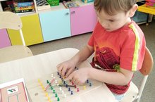 Часто можно заметить, как наши ребята увлеченно заняты математическим планшетом. Эта классическая дидактическая игра известна еще с 50-х годов XX века. Математический планшет прост в использовании. Он представляет собой квадратное поле, на котором расположено 49 штырьков (7 рядов и 7 столбцов), штырьки, расположенные на игровом поле равно удаленно друг от друга по горизонтали и вертикали, за которые можно цеплять резинки. Игровой материал позволяет ребенку сконструировать на плоскости множество различных изображений (буквы, цифры, геометрические фигуры, узоры, различные предметы, животных). Цель данной игры - способствовать познавательно-математическому развитию детей. Само наблюдение за игрой - уже увлекательный процесс. Ребята учатся передавать простейшие сюжеты - идет снежок, уточка у речки, бабочка над цветком и т. д. Либо с помощью резинок и плоских фигур картина дорисовывается, например, к прямоугольнику добавляются круги, и получается автомобиль. Дети могут нарисовать резинками свои собственные сказки, истории, перенести их на схему, а затем их рассказать - в данном случае активно развивается словесное творчество.