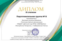 Поздравляем наших педагогов - воспитателя Наталью Юрьевну и инструктора по физической культуре Зайнап Динаесовну, а также воспитанников 8 группы - с вручением памятного диплома за успешное участие в Международном конкурсе "День матери". Праздник Дня матери призывает вспомнить о женщине, которая подарила жизнь, воспитала, отдала свою любовь, силы и терпение ребенку. Наши креативные, идейные, деятельные педагоги вместе с ребятами 8 группы в очередной раз доказали, что для того, чтобы рассказать маме о своих благодарности и любви, конечно же, не нужен отдельный день. Но провести совместное праздничное мероприятие и коллективно поздравить всех матерей – отличная традиция! Гордимся успехами наших педагогов и воспитанников! Желаем новых ярких достижений впереди!