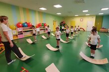 Сибирский борд – это тренажёр в виде изогнутой доски, который применяется для стимуляции мозжечка, отвечающего за координацию движений, равновесие и мышечный тонус. Ребенок, стоя на доске, балансирует в попытках удержать равновесие, вследствие чего, упражнения на борде способствуют: развитию координации, укреплению опорно - двигательного аппарата, улучшению осанки и развитию гибкости, ловкости.