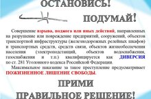 Совершение взрыва, поджога или иных действий, направленных на разрушение или повреждение предприятий, сооружений, объектов транспортной инфраструктуры (железнодорожных релейных шкафов) и транспортных средств, средств связи, объектов жизнеобеспечения населения (электроподстанций,объектов водоснабжения, газоснабжения и т.п.) квалифицируется как ДИВЕРСИЯ по ст. 281 Уголовного кодекса Российской Федерации.