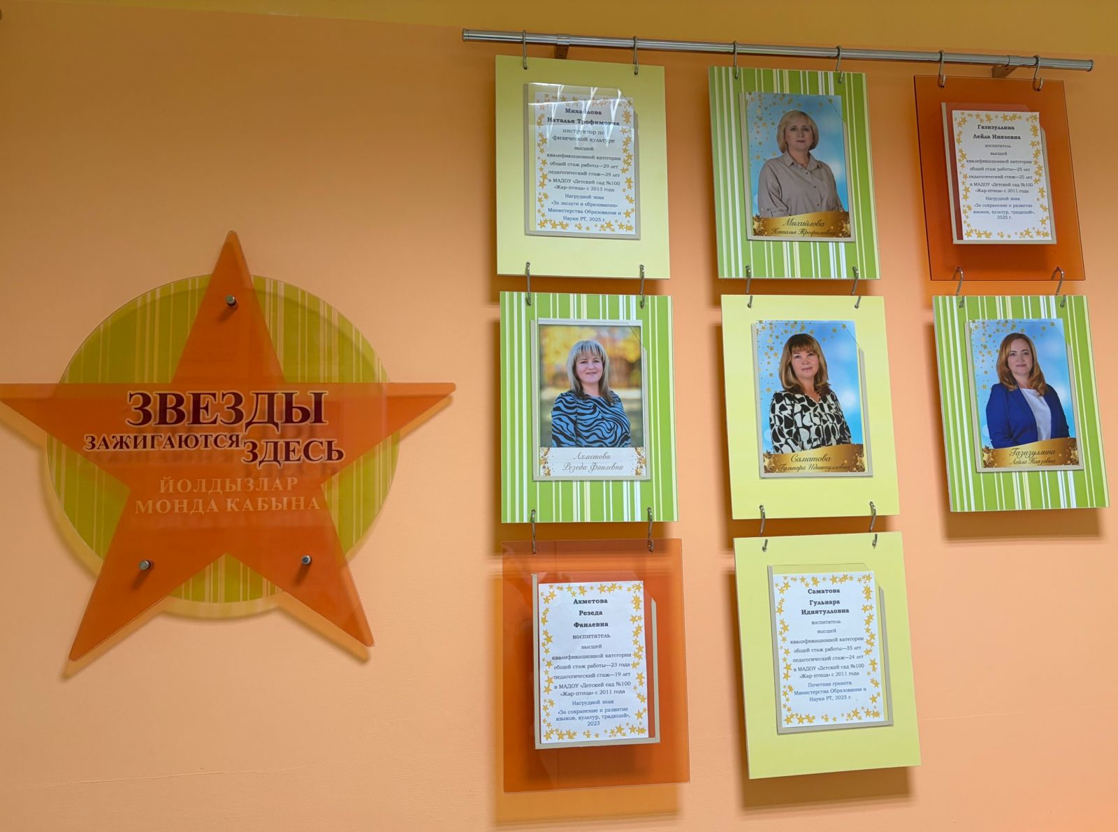 В рамках Года дошкольного образования в нашем детском саду организована "Аллея звёзд", где можно увидеть фото и описание достижений лучших педагогов и стажистов МАДОУ "Детский сад №100 "Жар-птица", которые ежедневно вкладывают душу в развитие и воспитание подрастающего поколения.
