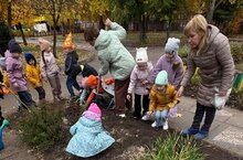 В рамках акции "Цветы весны", приуроченной к Юбилею "Жар-птицы" воспитанники с родителями и педагоги высаживают на клумбах детского сада тюльпаны-нежные весенние цветы.