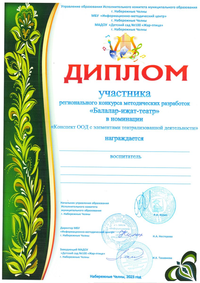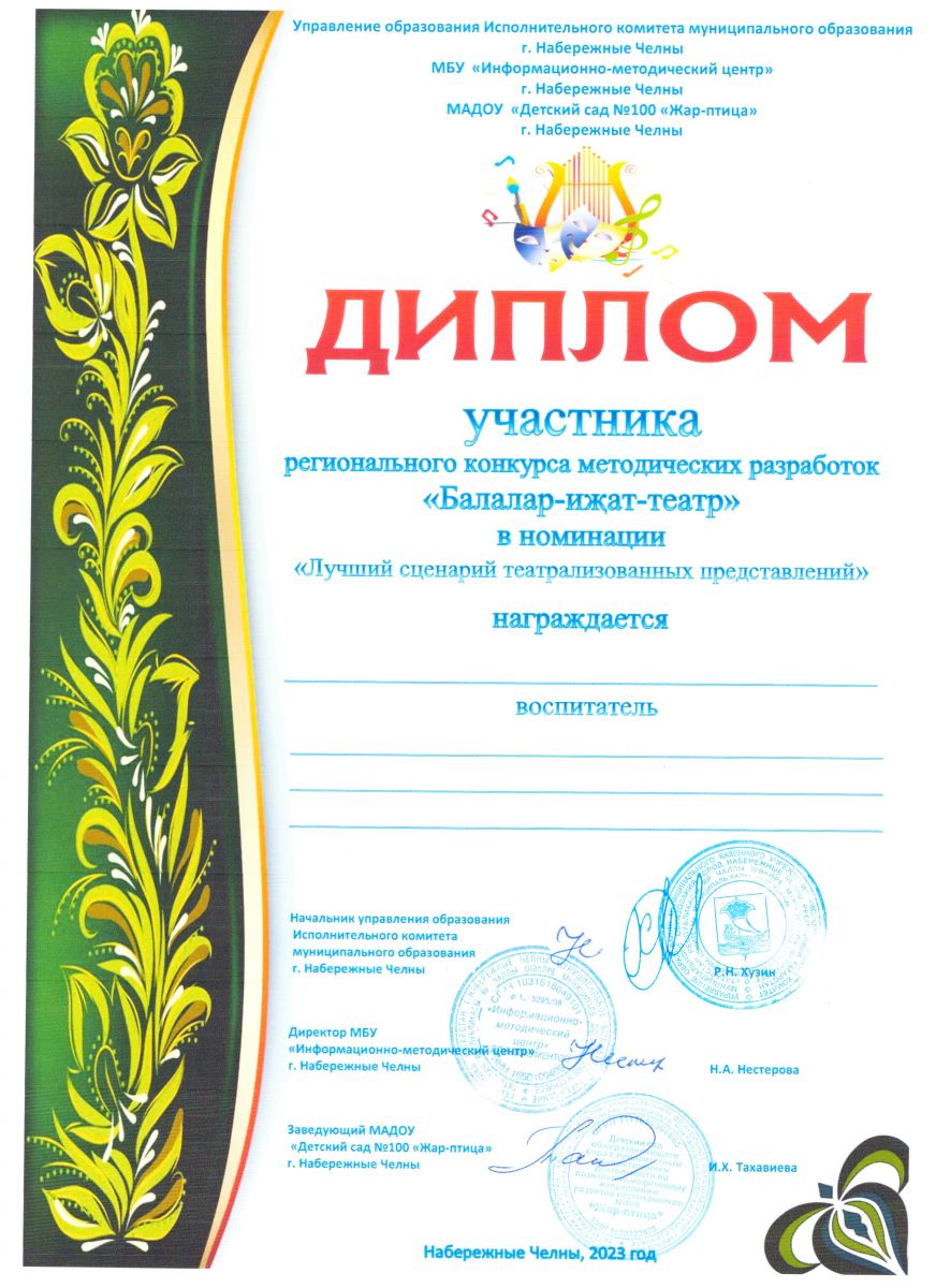 Итоги регионального конкурса методических разработок «Балалар-иҗат-театр» 17.04.2023