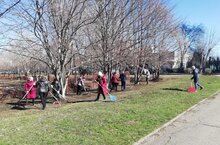 На субботник вышли дружно,Всё сегодня уберём,Грабли, мётлы, всё, что нужноМы с собою принесём!Хорошо работать вместе,Ну, дружнее налегай!Станет чисто в этом месте,Приходи зелёный май! -