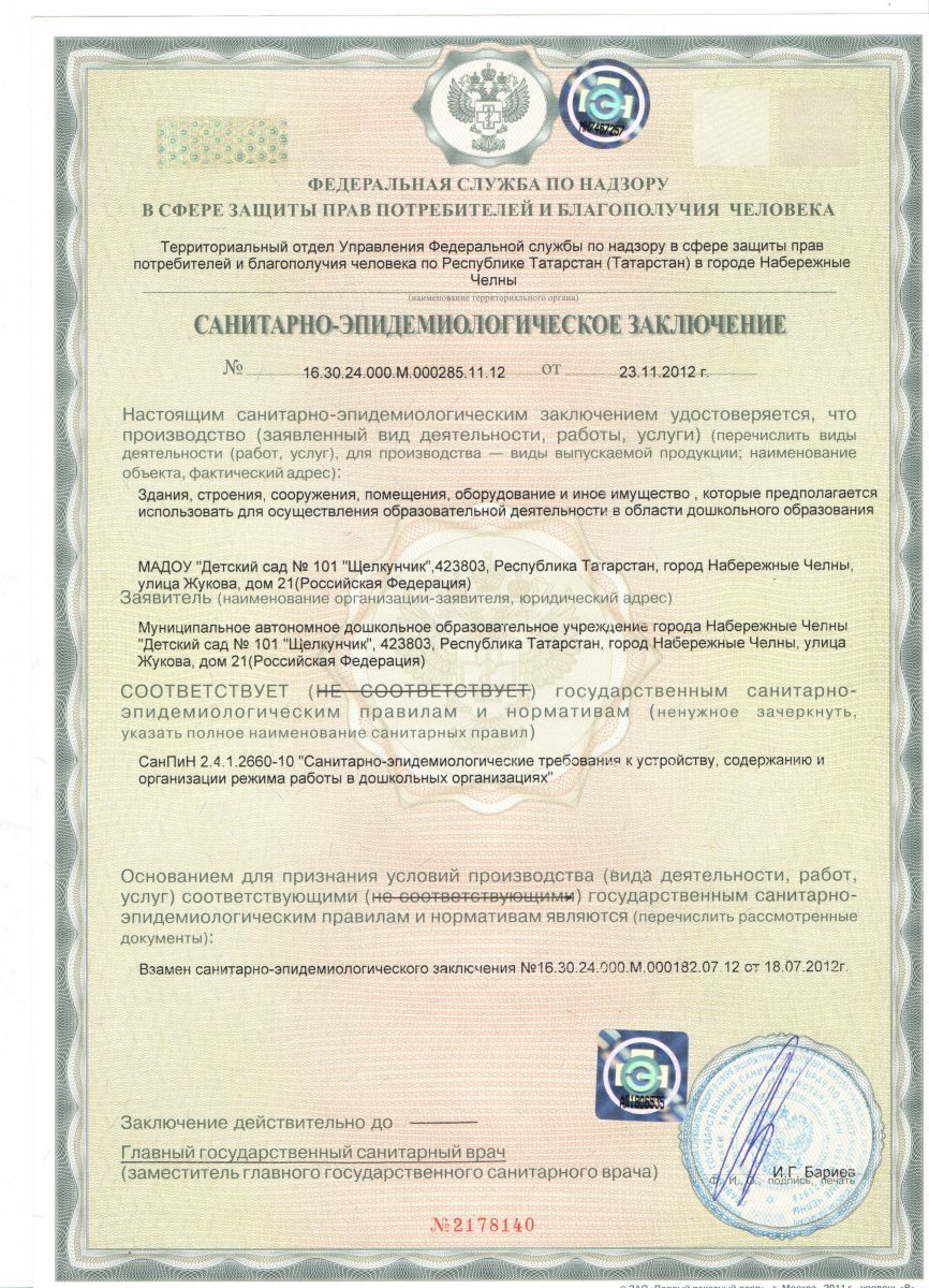 санитарно-эпидемиологическое заключение
