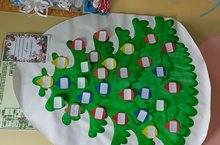 В детском саду ожила "Ёлочка пожеланий", наполнилась тёплыми словами-пожеланиями наших родителей. С волшебного мешочка Снегурочки, родители доставали предсказания на новый 2023 год. -