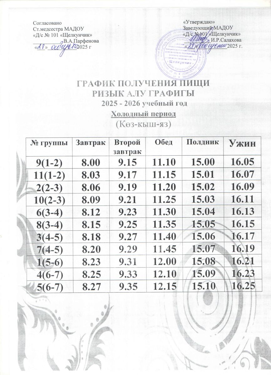 График получения питания