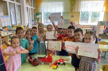 Дети разделились на две группы, на команду, кто рисует и другая , кто конструирует. Все справились со своими заданиями. Рисунки и сконструированная пожарная машина получились яркими и интересными. -