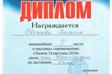 Поздравляем, Свежову Татьяну Михайловну! Занявшую 2 место в массовых соревнованиях «Лыжня Татарстана - 2016» на дистанции 2 км. 25.02.2016