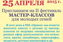 25 апреля 2015 года, Центр поддержки молодых семей приглашает на II фестиваль мастер-классов. Адрес: г.Набережные Челны, Московский пр-т, д. 162 (д.52\31\3) 08.04.2015