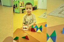 Очередное занятие прошло в STEM-кабинете для воспитанников старшей группе №5 с пособием «Свойства геометрических фигур».