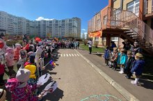 В преддверии праздника педагоги рассказали детям о важных моментах нашей истории, доступно объяснили, что такое День Победы, почему мы так свято к нему относимся, почему это радостный праздник со слезами на глазах, почему нам нельзя его забывать.