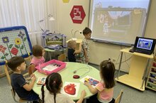 С помощью цифровой лаборатории «Наураша» мы создали в дошкольном учреждении мобильный образовательный центр, на базе которого можно в интересной, познавательной форме с использованием новейших интерактивных технологий проводить экспериментальную и исследовательскую деятельность детей. В состав лаборатории входит: 8 комплектов (лотков), каждый из которых посвящен отдельной теме: температура, магнитное поле, свет, электричество, звук, вкус (кислотность), сила, пульс. Датчики выполнены в виде ярких божьих коровок, которые подключаются к компьютеру через USB-порт.