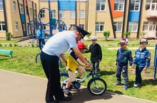 В рамках акции "Ребенок - главный пассажир" наш детский сад принял участие в городском конкурсе по БДД "Зеленый - цвет жизни" и занял 1 место. В подарок воспитанникам ДОУ от Управления ГИБДД МВД по РТ вручили 5 детских велосипедов.