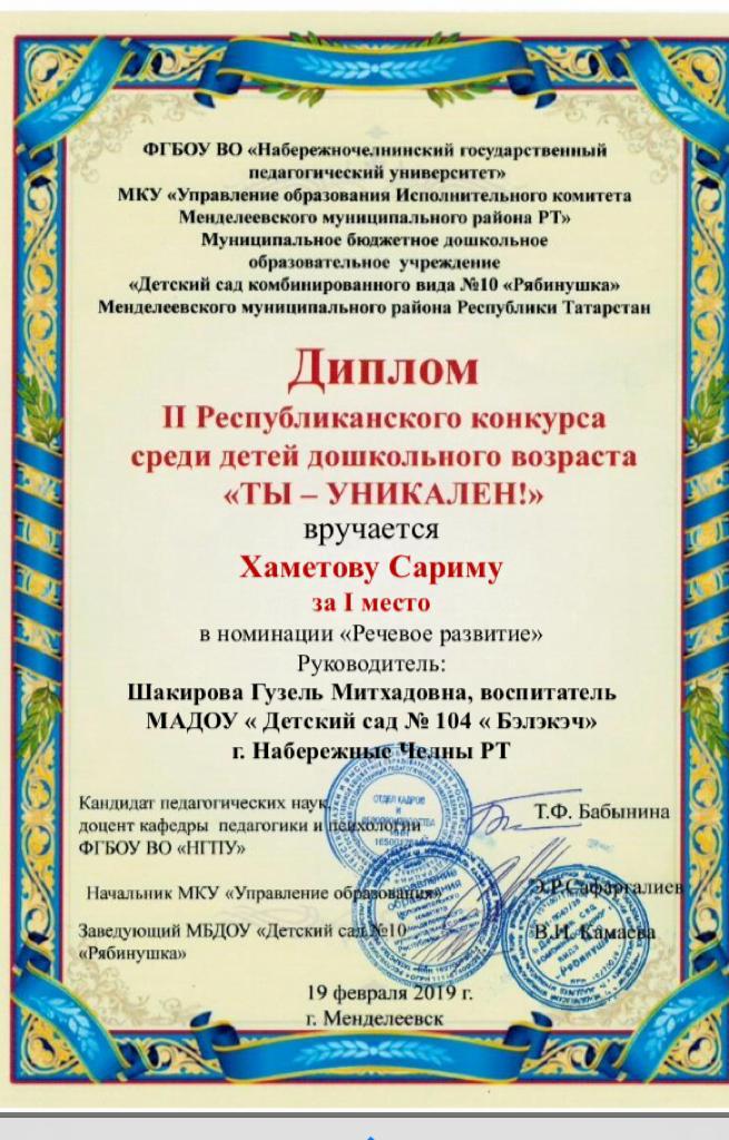 Муниципальное автономное дошкольное образовательное учреждение города Набережные Челны «Центр развития ребенка – детский сад №104 «Бэлэкэч»/Яр Чаллы шәһәренең «Бэлэкэч»104 нче балалар бакчасы-баланы үстерү үзәге» муниципаль автономияле мәктәпкәчә белем бирү учреждениесе