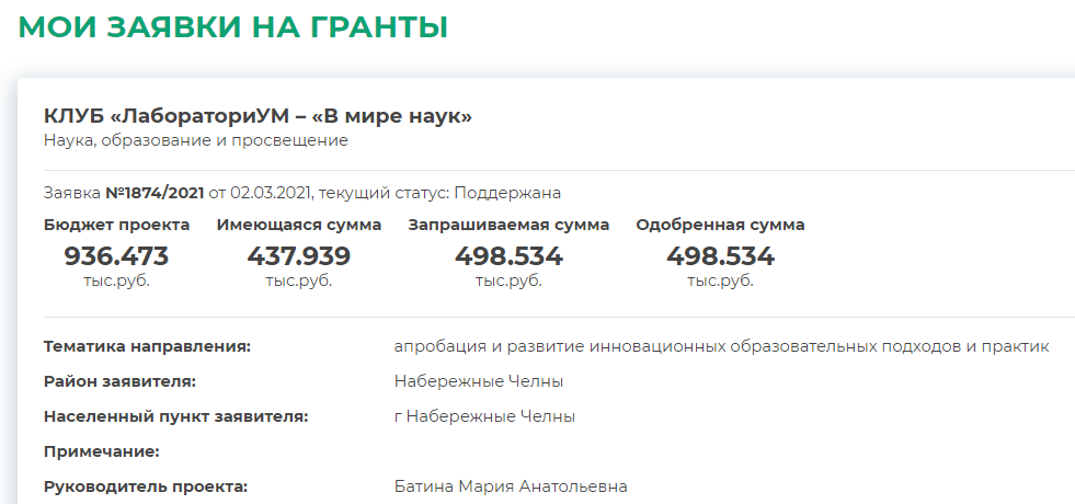 Опубликовано: 27.04.202127.04.2021 г. наш проект "ЛабораториУМ - "В мире наук" по развитию интеллектуальных способностей в процессе познавательно-исследовательской деятельности и вовлечению в научно-техническое творчество детей посредством STEM – технологий включен в список победителей VI Конкурса на предоставление грантов ПАО «Татнефть».