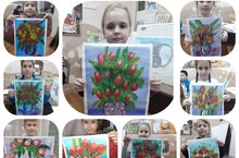 Юные художники объединения "Мастерок", руководитель Фёдорова А. И., приготовили прекрасный подарок мамам - букет весенних цветов.С праздником!