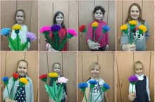 Обучающиеся творческого объединения "Чудо - лоскуток", руководитель Вафина В. А., поздравляют своих мам с праздником! Они с любовью и старанием сделали яркие цветы из шерстяных ниток: васильки, гвоздики, одуванчики, клеверы.