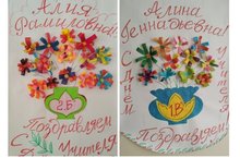 Ребята, обучающиеся в творческом объединении "Радуга", руководитель Краснова И. В., букетами из цветов собственного творения поздравили любимых учителей с профессиональным праздником!
