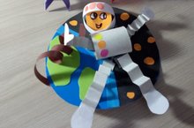 Обучающиеся творческого объединения «Английский через искусство», руководитель Зиннатуллина А. И., изучили тему «Солнечная система» на английском языке и сделали аппликацию ко Дню космонавтики «Космонавт в открытом космосе»