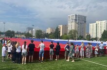 05.06.2024 на стадионе СШ «Виктория» (Медео) SMS-активисты приняли участие в акции, приуроченной празднованию Дня России. В рамках акции развернули российский триколор размером 100х60м.
