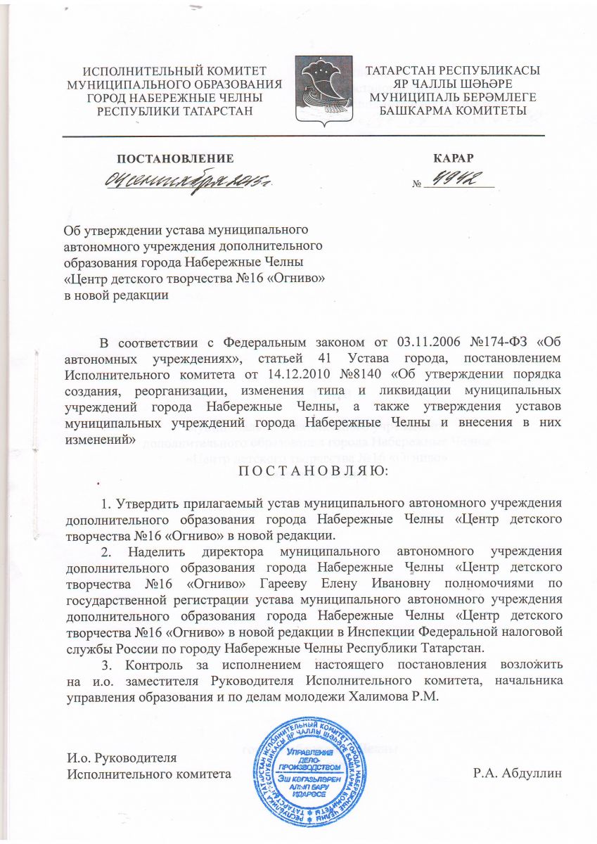 Муниципальное автономное учреждение дополнительного образования города Набережные Челны «Центр детского творчества №16 «Огниво»/ Яр Чаллы шәһәренең "16нчы "Чакматаш" балалар иҗат үзәге" муниципаль автономия өстәмә белем бирү учреждениесе