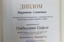 Поздравляем! Гладышеву Софию с победами на I Всероссийской музыкально - теоретической олимпиаде.